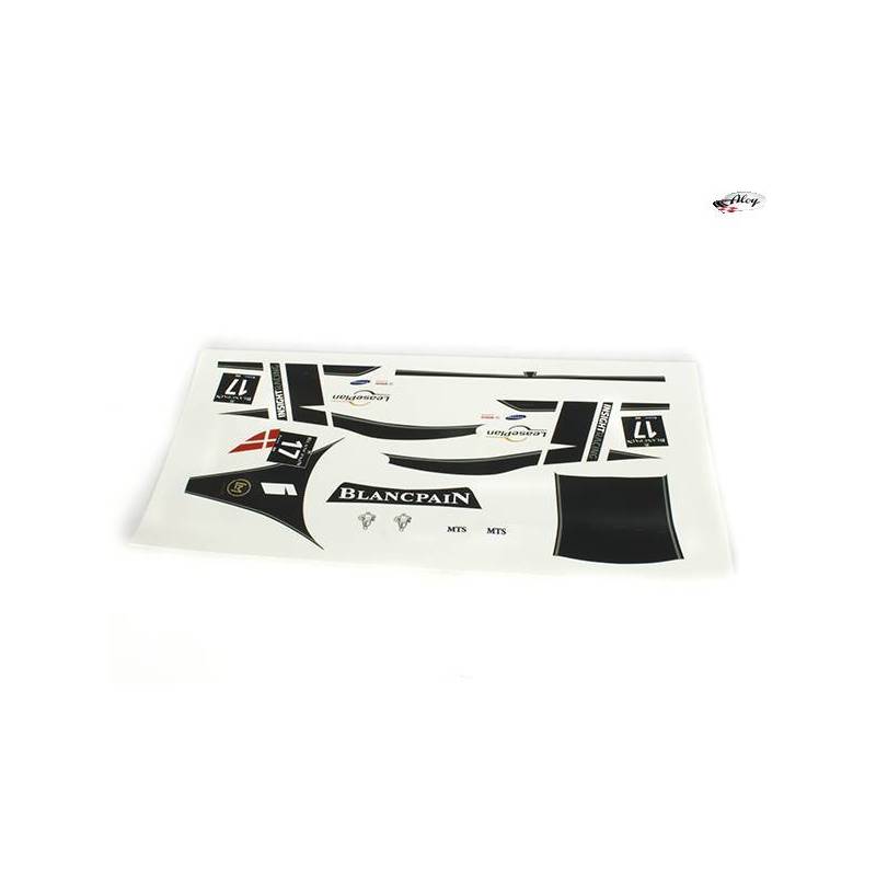 Decals made by Black Arrow to the white body of the GT3 Italy in either of its two versions, body kit or complete car kit.