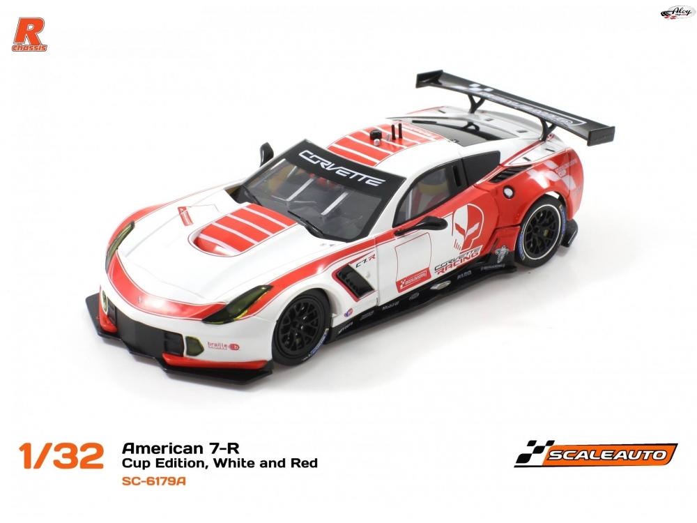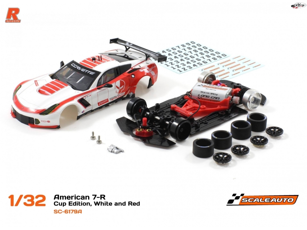 Corvette C7R by Scaleauto in kit color white and red with body painted and mounted. It incorporates: